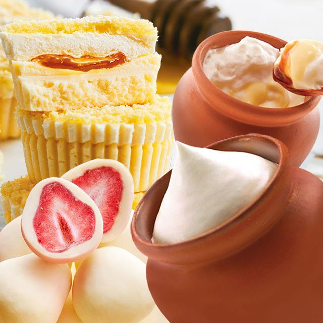 原材料 クリームチーズ(国内製造)、卵、砂糖、クリーム(乳製品)、蜂蜜、乳等を主原料とする食品、サワークリーム(乳成分を含む)、植物油脂(大豆を含む)、加糖卵黄(卵を含む)、小麦粉、牛乳、水飴、ゼラチン、乳糖、食塩、寒天、小麦でん粉/トレハロース、安定剤(ローカスト、トラガント、増粘多糖類)、乳化剤(大豆由来)、pH調整剤、加工デンプン
