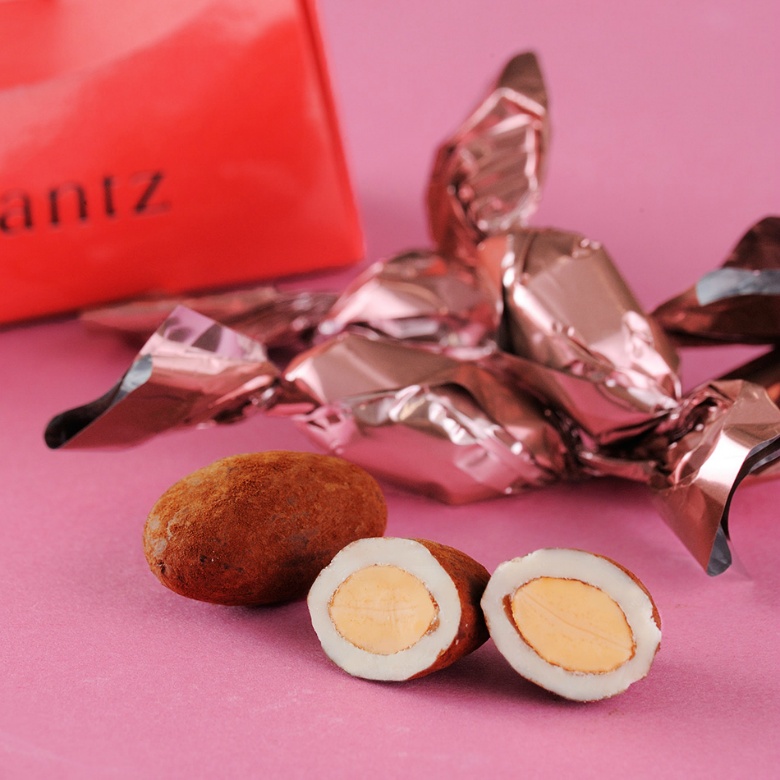 厳選を重ねた大粒アーモンドを絶妙な火加減でロースト。カリッと香ばしい、その風味と食感を逃さないようキャンディーコートして、濃厚マスカルポーネチーズ風味のホワイトチョコレートでコーティング♪仕上げに香り高いココアパウダーをまぶしました。ひと口ごとにカリッと心地よい食感のアーモンドの香ばしさとティラミス風味のミルキーなホワイトチョコレートのまろやかさが、ティータイムに安らぎをお届けします。