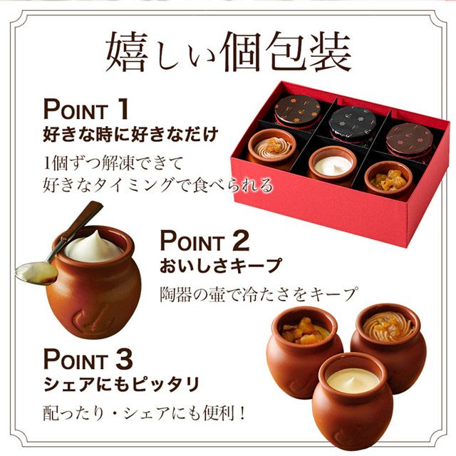 他の画像を見る 1日20,000個完売の壷プリンをはじめ、とろける壷プリンが3種類入ったギフトにピッタリのスイーツセット! 魔法の壷プリン(R)3種アソートBOX【数量・季節限定】【送料込み ※北海道・沖縄400円別途】 ¥ 3,980 税込 お気に入り登録 在庫切れ オンライン限定 冷凍便