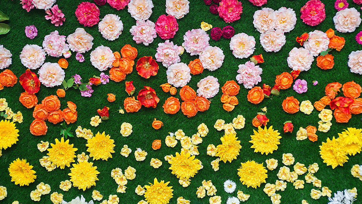 「インフィオラータ」とはイタリア語で「花を敷きつめる」という意味。道路や広場に花びらで絵を描き、鑑賞するイベントで、イタリアのジェンツァーノ市をはじめ、ヨーロッパ各地で親しまれています。