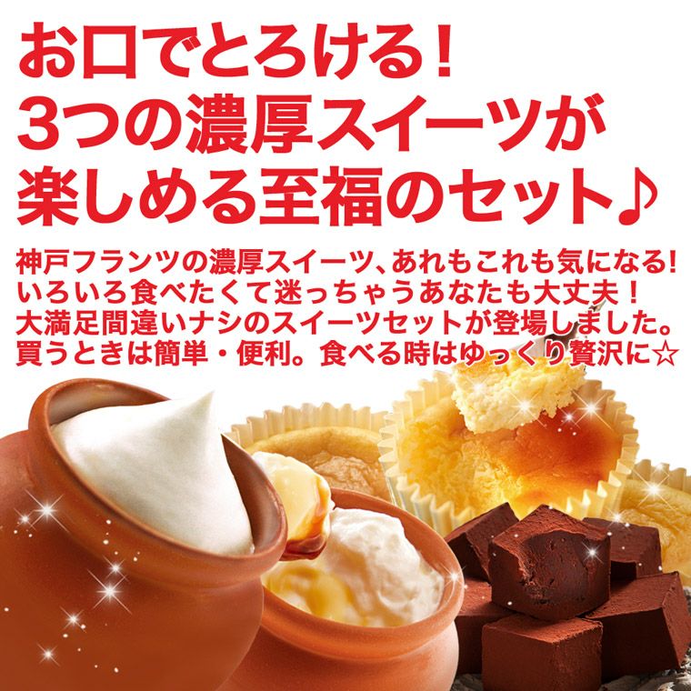 他の画像を見る 至福のひと時を彩る濃厚スイーツ、半熟フロマージュ・壷プリン・苺トリュフの3種セット! 半熟フロマージュと壷プリンと苺トリュフのセット 冷凍便 ¥ 4,856 税込 カートに入れる お気に入り登録